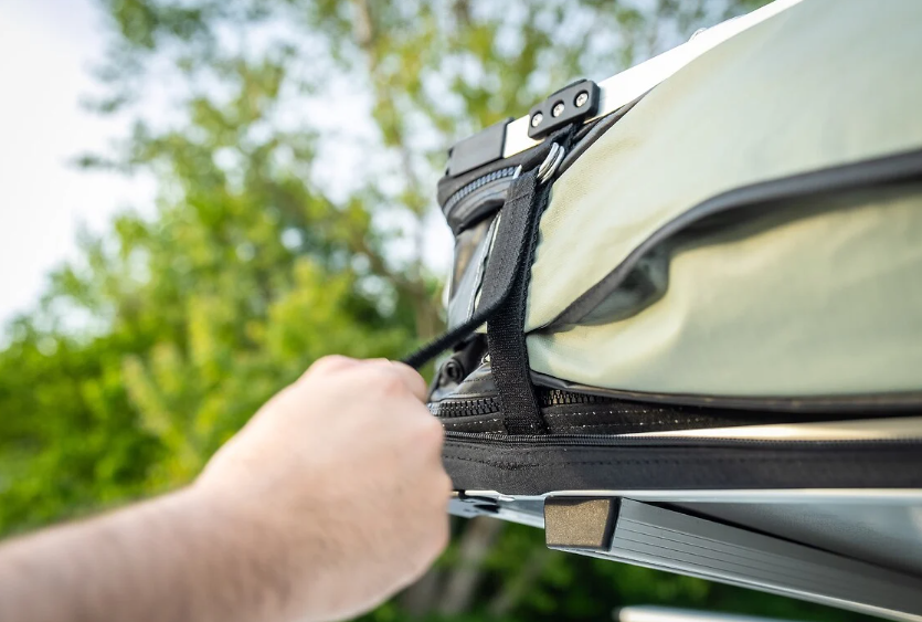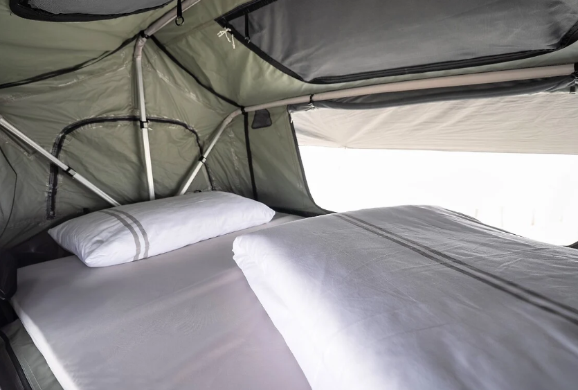 Lorsqu’elle est déployée, la tente repose sur des rails de toit (également proposés en option) et est soutenue par des poteaux télescopiques inclus. Elle fournit une surface de couchage de 2,13 x 1,19 mètres, suffisante pour deux personnes, à condition que leur poids combiné ne dépasse pas 240 kg.