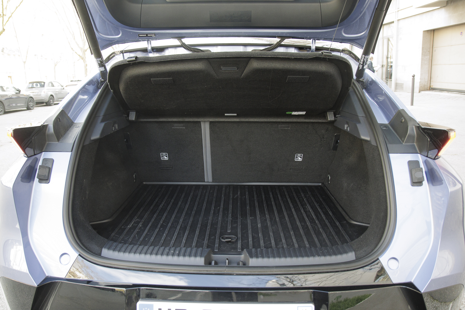 Le constructeur a amélioré un certain nombre de points mis en évidence par les clients : terminé le « rayon » bleu électrique sur les jantes, choisi par la marque pour être identifiable, idem le bleu à l’intérieur. Place à un cuir vegan noir. Le cache-bagages qui remontait avec le hayon était considéré comme bas de gamme : il reste désormais en place. Idem, le ciel de toit passe en noir. L’ambiance se veut plus dynamique, plus terne aussi.