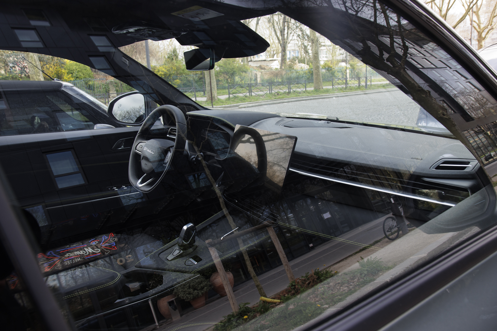 Nous avons enfin pu prendre en main dans Paris le 02, dont l’arrière fait évidemment penser à un certain Toyota C-HR. David Green nous montrait le grand rangement central, qui existe sous différentes formes en accessoire ; même façon réfrigérateur. Il est alors amovible, et « emportable ».