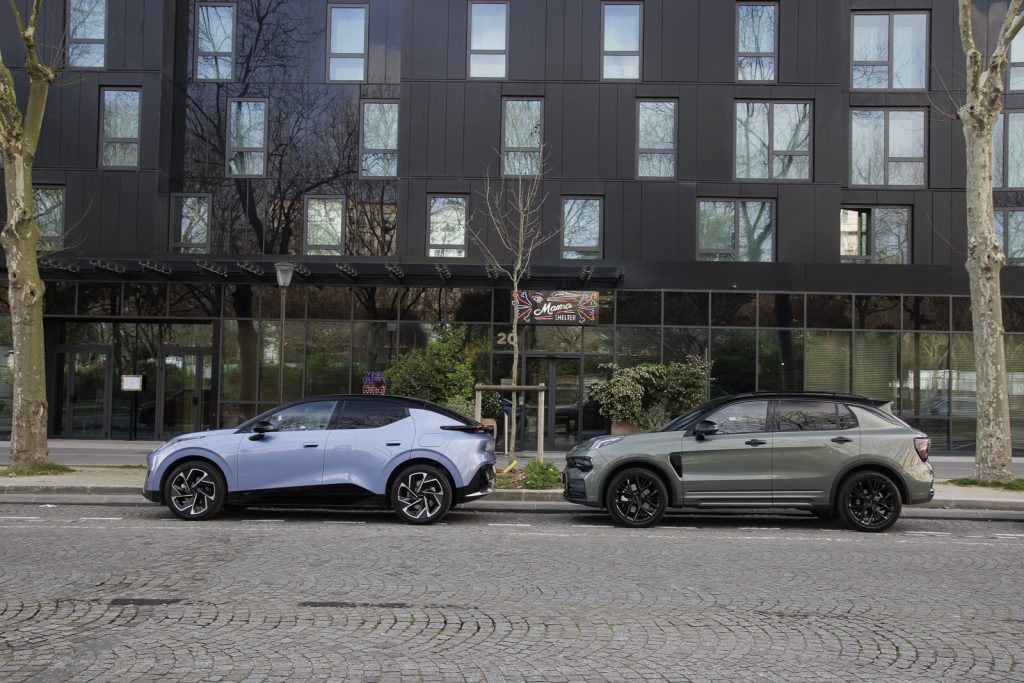 Nicolas nous indiquait alors que l’âge moyen de leurs clients était de 10 ans inférieur à celui de la marque Volvo ; notamment du fait de toute cette gymnastique mise en avant de la location. En plus du 01 facelifté, Lynk&Co lance alors le 02, un cousin du récent Volvo EX30, lui-même de la famille « Geely », partageant ses soubassements avec les Smart #1 et #3. Le style est affirmé, avec dans les deux cas une sorte d’aileron de requin au niveau du montant C, des optiques avant à double étage et un pavillon biton, comme flottant. Les deux marques semblent alors prendre un chemin distinct. Le 100% électrique pour Volvo (même si de certains XC60 et XC90 perdurent en hybride ..) et une majorité d’hybride rechargeable pour Lynk&Co.