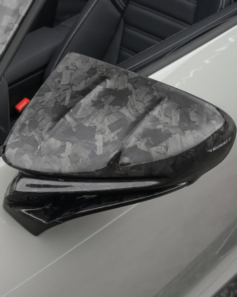 - Du carbone forgé supplémentaire sur le cadre du pare-brise, renforçant l’harmonie stylistique.