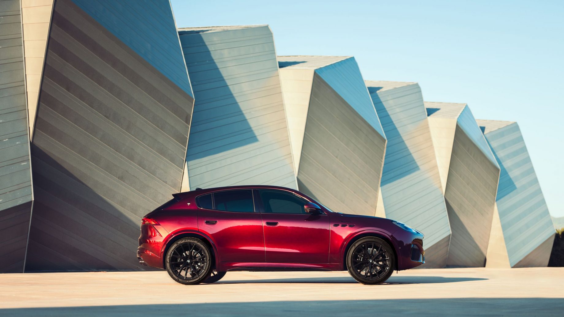 L’intérieur est habillé de cuir beige/rouge foncé avec des coutures ton sur ton et un motif « cannelloni » (tissage côtelé) spécifique et des appuie-tête ornés du logo Trident en rouge foncé. L’expérience sensorielle est complétée par un système audio premium Sonus Faber à 14 haut-parleurs ainsi qu’un toit ouvrant panoramique, afin de profiter de toutes les sensations.