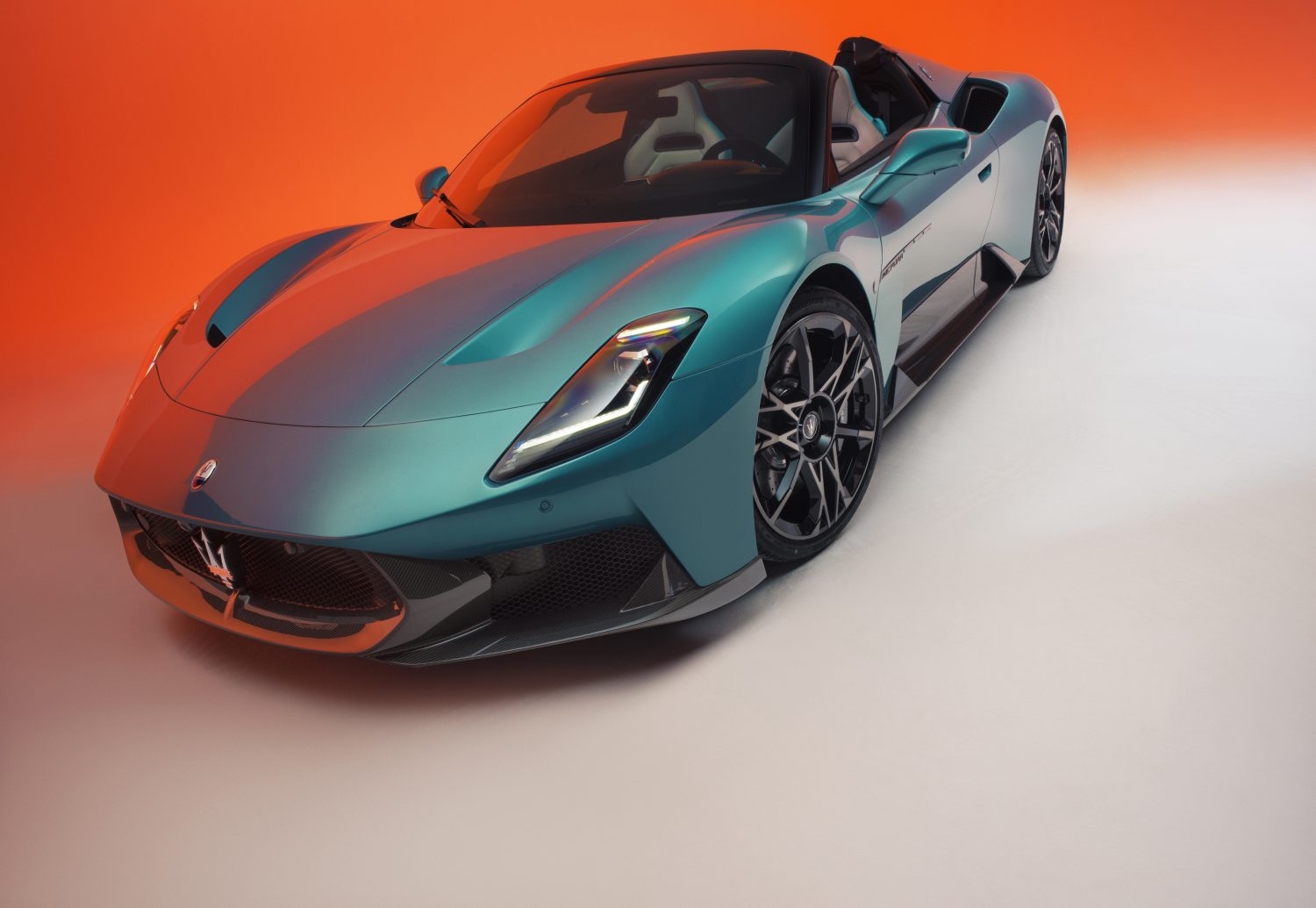 Les jantes en alliage de 20 pouces rendent hommage aux jantes à rayons des Maserati des années 1950, tandis qu’une nouvelle teinte Ai Acqua Rainbow fait son apparition. Conçue dans le cadre du programme de personnalisation Fuoriserie, en version mate pour le coupé et brillante pour la MCPURA Cielo, son nom évoque la lumière en mouvement.