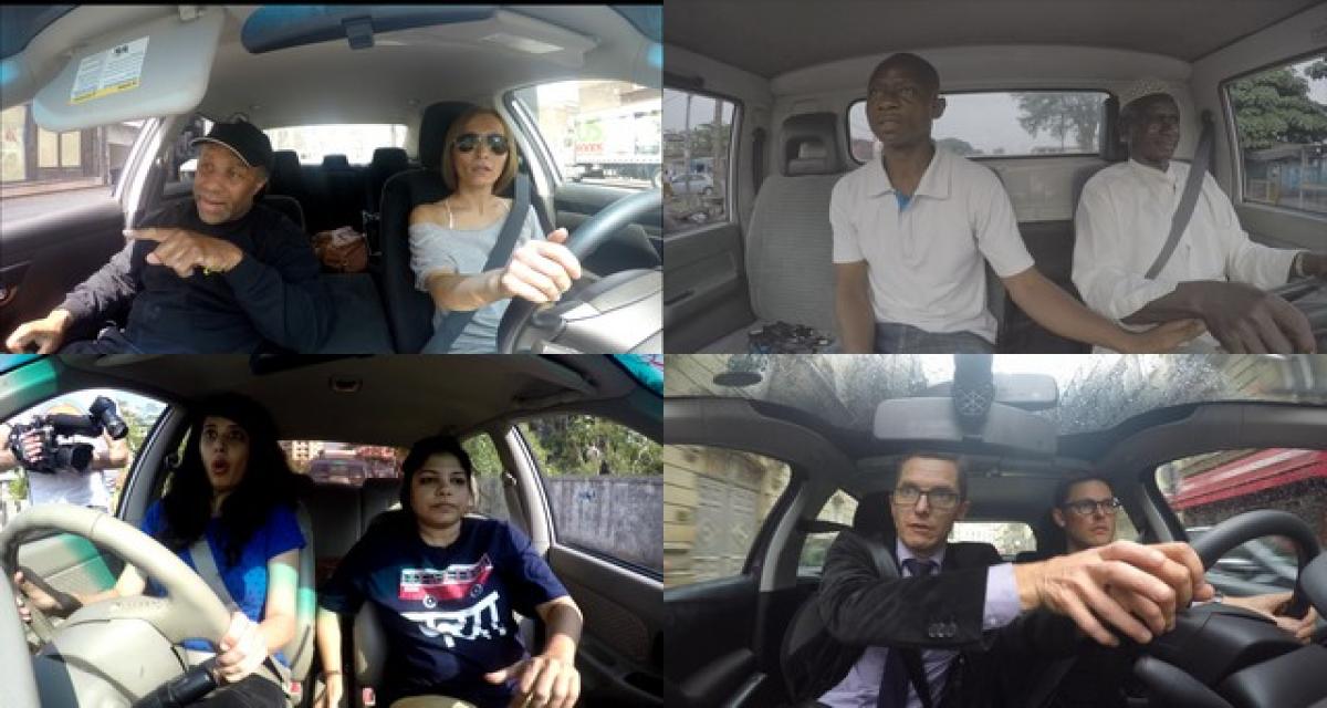 Permis du monde suit ainsi quatre établissements, à New-York, Abidjan, Mumbai et Paris. Le New-yorkais Yisrael se la joue cool. D’ailleurs, il n’hésite pas à prendre son repas dans la voiture et l’élève doit attendre qu’il ait fini pour démarrer ! L’Ivoirien Gnombléa n’hésite pas à se déplacer à domicile pour enseigner le code. On découvre au passage une Afrique avec des buildings et des autoroutes, rarement vue aux actualités. A Mumbai, Sneha possède une auto-école uniquement destinée aux femmes. Grande consommatrice de déodorant, elle enseigne l’art de slalomer entre les rickshaw et les vaches sacrées aux Indiennes. Quant à Jean le Parisien, il a la vanne facile avec ses élèves étourdis : « Eh oui, il y a plein de gens. Tu verras, il y a tout le temps des gens ici. C’est pour ça que ça s’appelle les Gens Elysées ! »