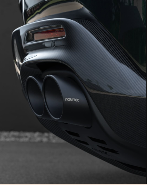 La première chose qui saute aux yeux est le contraste frappant entre la carrosserie vert intense et les accents orange. Ces touches vives, peintes avec précision, viennent dynamiser l’ensemble tout en soulignant certains détails de design. Ce mariage de couleurs est audacieux, mais il s’inscrit parfaitement dans l’approche esthétique de Novitec : casser les codes classiques sans compromettre le luxe.