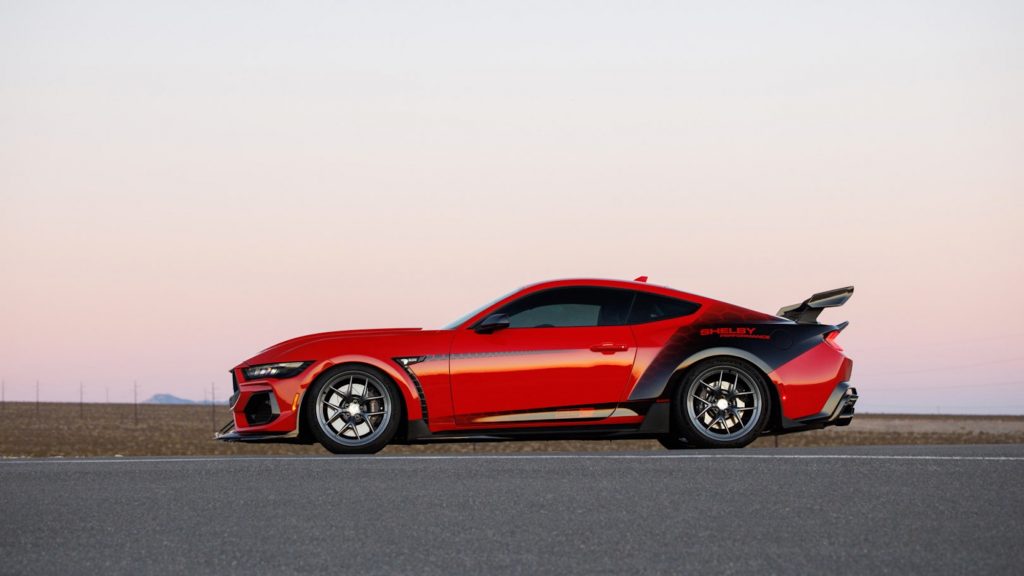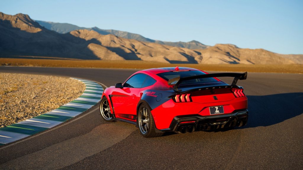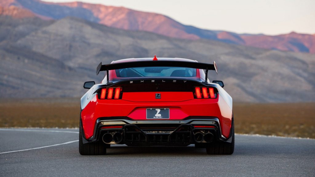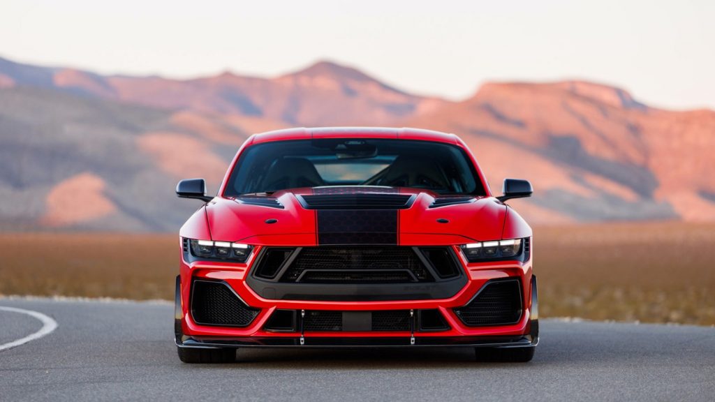 C’est une édition limitée, basée sur la Ford Mustang Dark Horse, mais dotée d’une nouvelle suspension indépendante à ressorts hélicoïdaux, de voies élargies, de pneus plus larges, de pièces aérodynamiques en fibre de carbone, d’un système de refroidissement amélioré et de nombreuses autres améliorations.