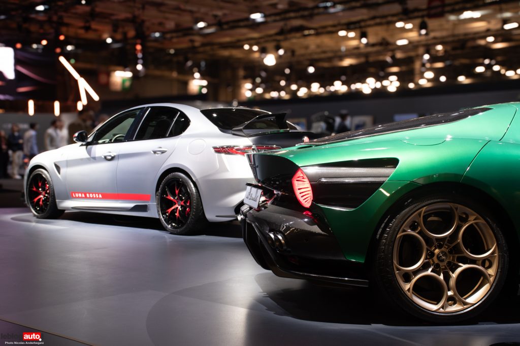 Alfa Romeo a lancé le programme Bottega en 2023 pour produire des voitures d’exception en très petite série. Maserati de son côté a développé son département Fuoriserie dédié à la personnalisation de ses modèles. Le rapprochement du Biscione et du Trident, opéré depuis 2024 par une direction commune, a abouti également à la fusion des deux départements d’élite avec la BottegaFuoriserie, dont le stand trônait en plein coeur de ce Hall 4.