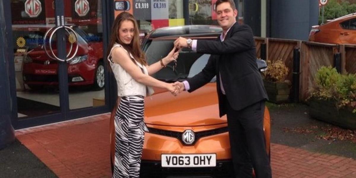 La première MG3 vient d’être livrée en Grande-Bretagne à une propriétaire qui a droit à une photo tous sourires dehors.. Second modèle de la nouvelle incarnation de MG en Europe après la MG6, cette nouvelle citadine cinq portes espère mieux se vendre que son aînée.
