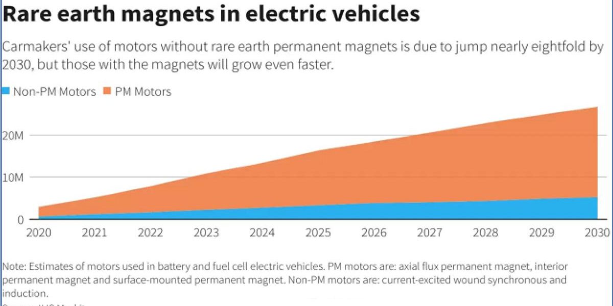 General Motors et General Electric viennent d’annoncer qu’ils prévoyaient d’étudier les moyens de développer une chaîne d’approvisionnement de terres rares et d’autres minéraux utilisés pour fabriquer des véhicules électriques et des équipements d’énergies renouvelables.