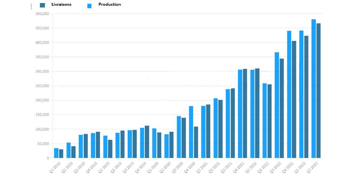Tesla a établi de nouveaux records de production et de livraisons de ses voitures électriques au deuxième trimestre 2023.
