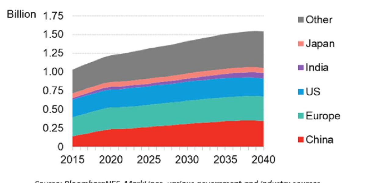 Les ventes de voitures devraient continuer à croître au niveau mondial jusqu’en 2036, pour atteindre un parc de 1,5 milliard de véhicules particuliers en circulation sur le globe en 2039. C’est en tout cas ce qu’il ressort d’un rapport publié par Bloomberg New Energy Finance (BNEF).