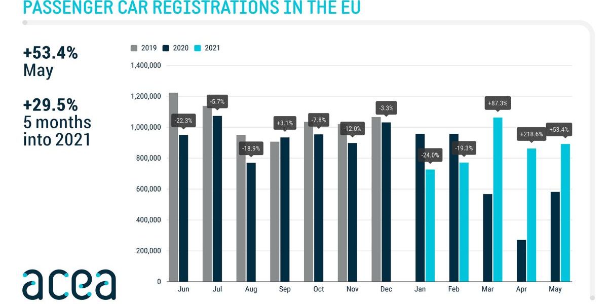 Le redémarrage est à l’ordre du jour sur tous les marchés d’Europe en mai, avec une progression globale de plus de 73%. Mais par rapport à la période pre-Covid, il manque encore 25% des volumes.