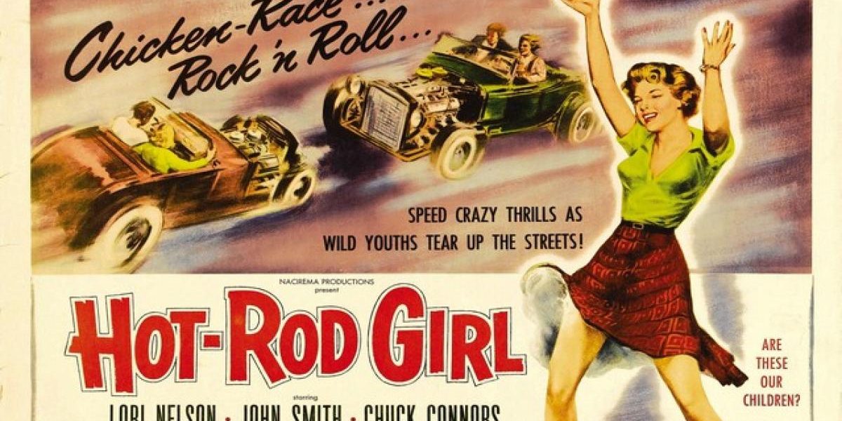 Les années 50, aux Etats-Unis, sont marquées par l’explosion des teenagers. Les adolescents des classes moyennes ont pas mal d’argent de poche et ils veulent le dépenser. L’automobile est très présente dans cette univers à la fois très conventionnel (l’après-guerre est puritaine) et un peu rebelle. Tout un genre cinématographique met en scène de jeunes gens au volant de bolides. C’est le cas d’Hot rod girl.