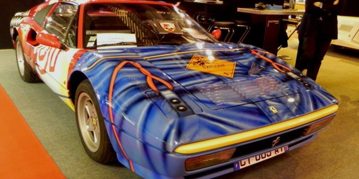 Rétromobile, c’est aussi l’art. En témoigne cette Ferrari 328 GTB entièrement repeinte par Peter Klasen, sur le stand de la galerie Mecanica.