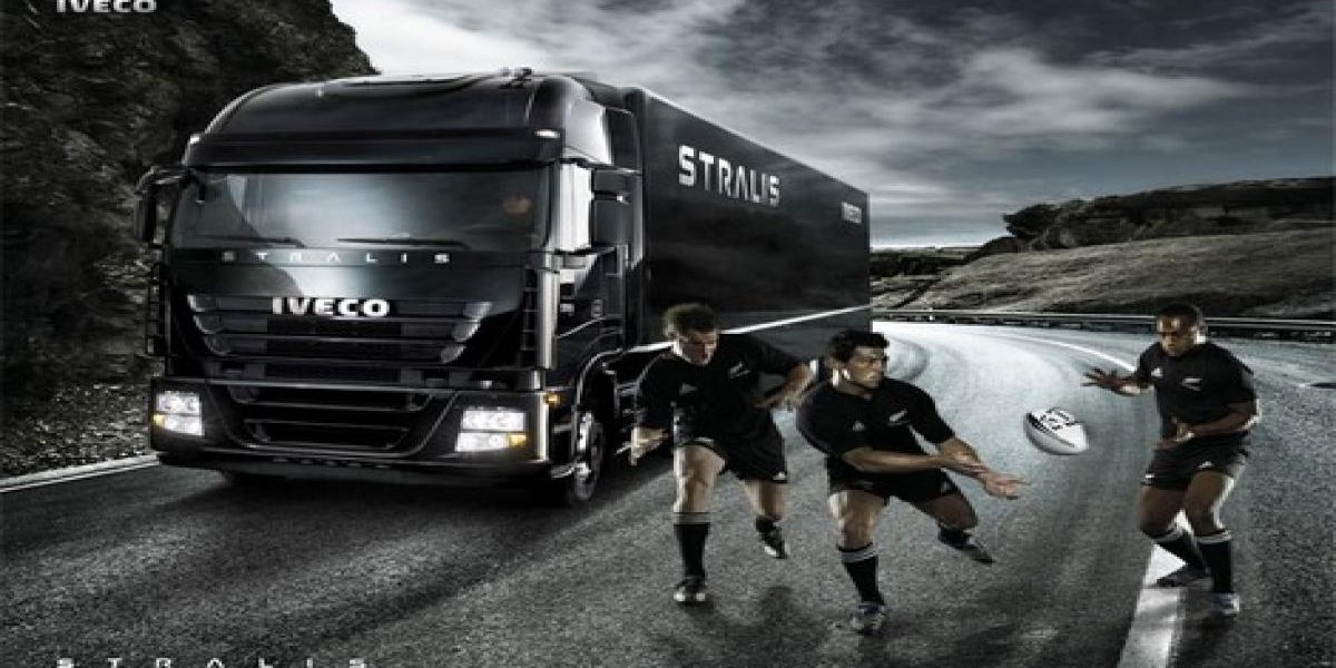 Pour les fans de rugby, il y a Iveco aux couleurs des All Blacks. Ils sont noirs avec des motifs inspirés des tatouages maoris. Et évidemment, pour les vendre, il fallait des spots de pub du même acabit. Ka mate!