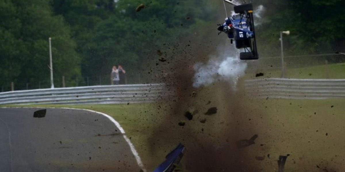 Quant il sort de la piste, Ameya Vaidyanathan (Carlin), il ne fait pas semblant ! Ce fut l’image choc d’une épreuve de British F3 avec pas mal de « trains ».