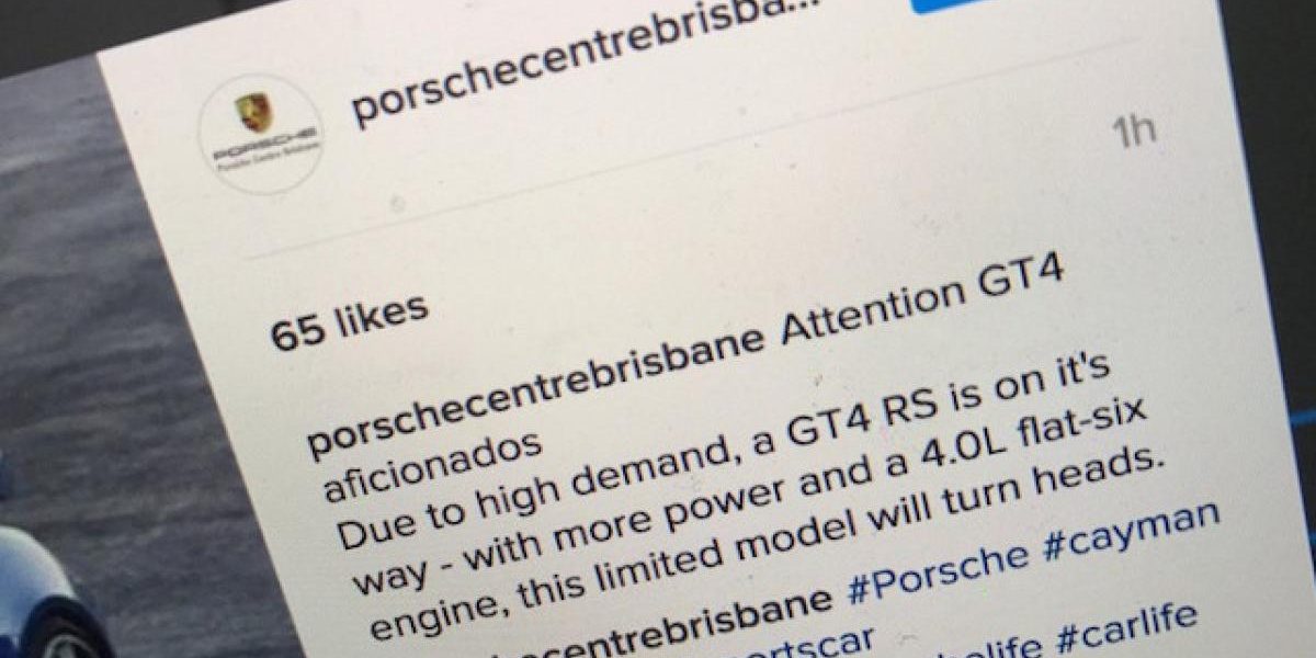 Un concessionnaire Porsche australien a vendu la mèche sur Instagram en confirmant l’arrivée prochaine de la Cayman GT4 RS. Son message a depuis été retiré du service de partage de photos.