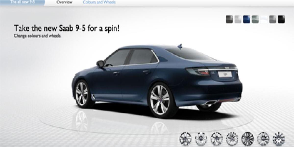 A quelques semaines maintenant de sa commercialisation effective (fin mai), la nouvelle Saab 9-5 s’offre un configurateur. Ou plutôt une première esquisse de configurateur puisqu’il ne permet, à l’heure actuelle, que de choisir le type de jantes et la couleur de carrosserie de la berline suédoise.