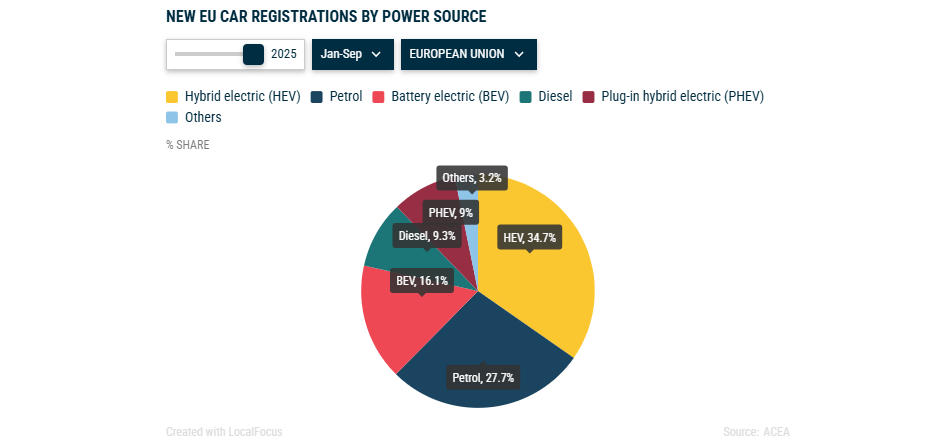 L’Association des constructeurs européens d’automobiles (ACEA) révèle qu’à fin septembre 2025, les immatriculations de voitures particulières neuves en Europe affichent une hausse modeste de 0,9 […]