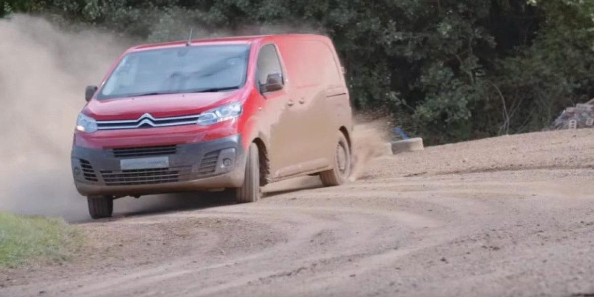 Pour faire la retape de son Citroën Jumpy (alias le Dispatch en Angleterre), Citroën UK a fait appel au pilote de l’écurie officielle Citroën Racing en rallye mondial WRC. Kris Meeke secoue son copilote, Paul Nagle, ainsi que le fourgon.