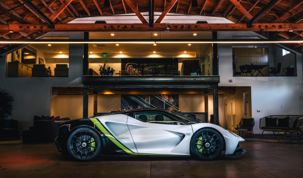 Jenson Button aime bien Lotus. Il n’a jamais couru pour, mais il est partie prenante dans le constructeur Radford, qui produit la Type 62, une réinterprétation moderne de la Lotus 62. Cette fois-ci, c’est en client prestigieux qu’il s’affiche en Californie avec une Evija faite sur mesure.