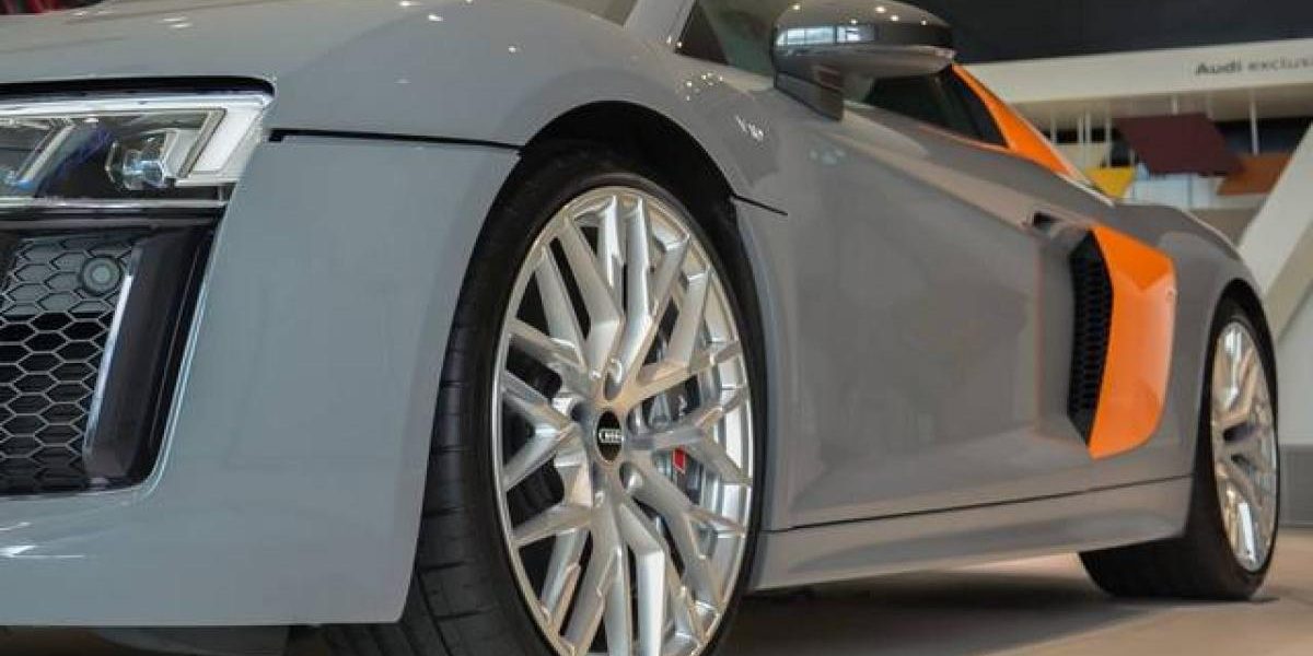 Nouvel exemple des possibilités de personnalisation offertes par le département Audi Exclusive. Après avoir apprécié une RS7 Sportback, c’est une R8 V10 Plus qui est illustrée.