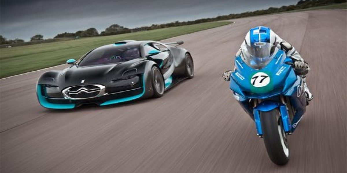 Sur le circuit de course Thruxton outre-manche, Citroën organisait récemment un duel sympathique entre le concept Survolt et la moto électrique Agni Z2 (superbike) à l’occasion de la participation du concept à la manifestation EcoCar Spectacular. Quant aux pilotes on retrouvait Vanina Ickx pour les Chevrons contre Jenny Tinmouth sur deux roues.