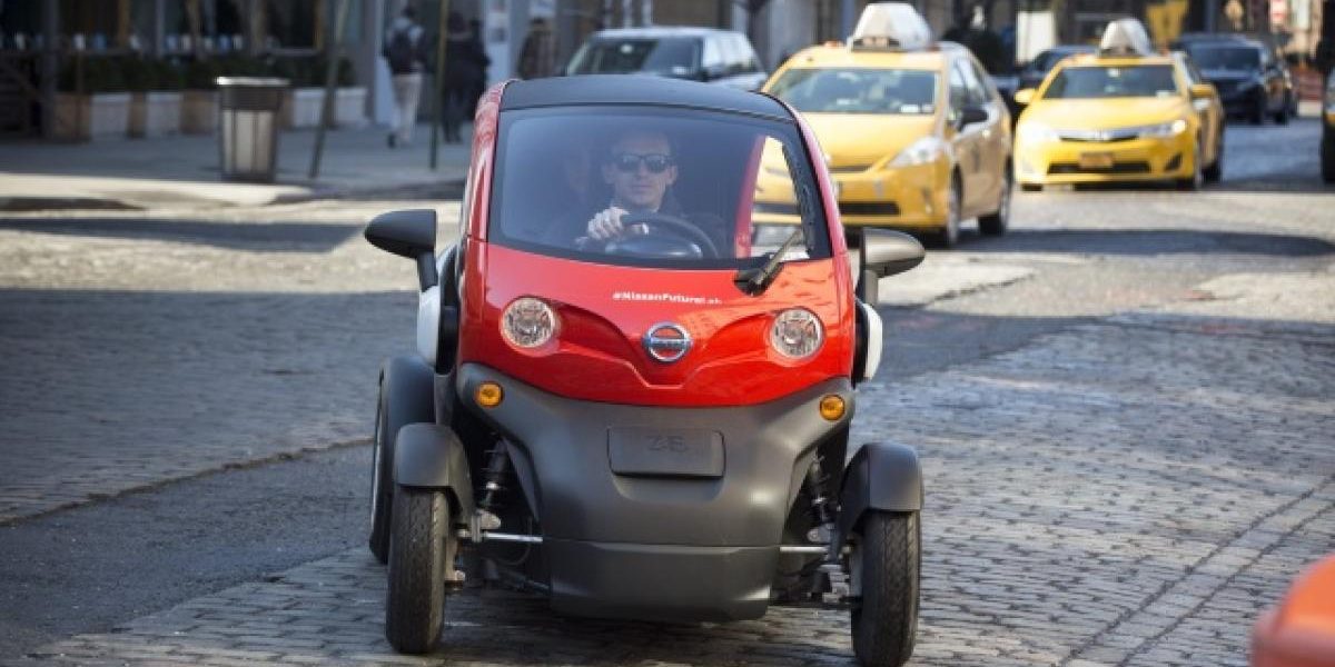 Nissan fait le grand écart au salon de New York 2016 avec la présentation de la supercar GT-R modèle 2017 d’un côté et le NNMC de l’autre. Si ce petit véhicule vous dit quelque chose, c’est qu’il s’agit d’un Renault Twizy avec un badge Nissan.