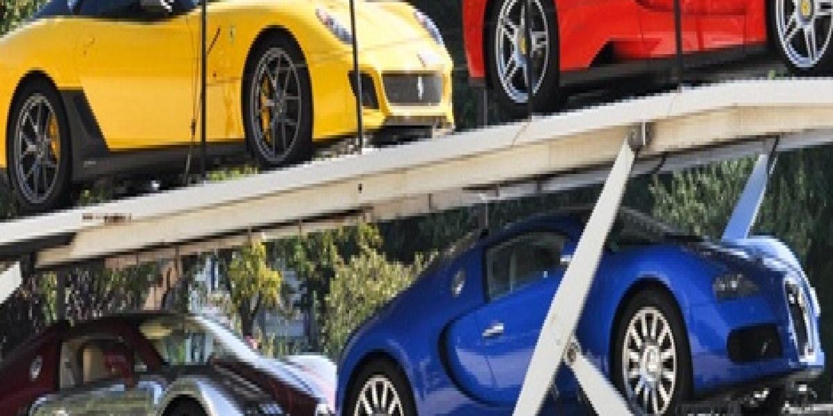 Aujourd’hui Jeudi 29 septembre 2011, c’est l’actualité qui fait la photo du jour, mais on reste sur les fondamentaux : du supercar en pagaille, le tout appartenant (plus pour longtemps) au même propriétaire. Cela nous donne un transporteur chatoyant qui reçoit plus de chevaux qu’une armée de bétaillères.