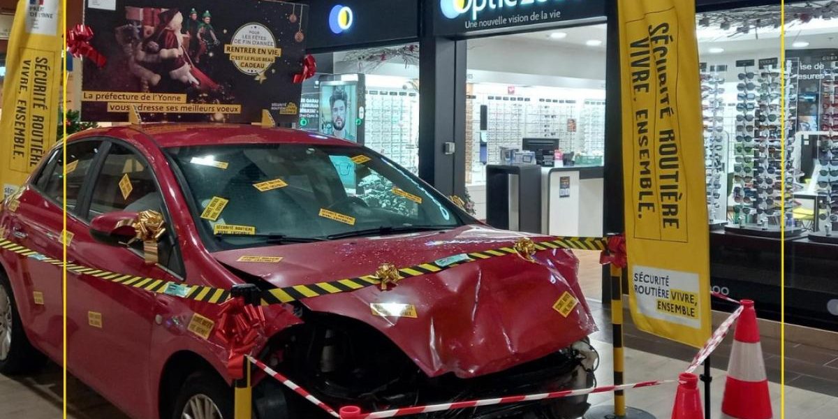 En ces périodes de Noël et de Nouvel An, dans les galeries commerciales, on s’attend plutôt à croiser des rennes et un vieux barbu sur un traineau que des voitures accidentées. Et pourtant c’est ce que vous verrez si vous allez dans l’Yonne. Explications.