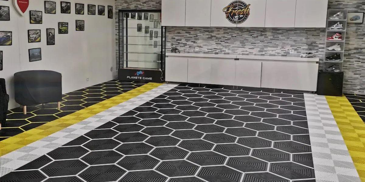 Quand on a un garage, on veut garder un sol le plus propre possible. La plupart du temps on va avoir une dalle béton toute simple, qui accumulé et déplace la poussière. Elle peut être peinte mais cela se dégrade très rapidement. Savez-vous qu’il y a un moyen rapide et simple de transformer radicalement le sol de votre garage ? La dalle PVC clipsable !