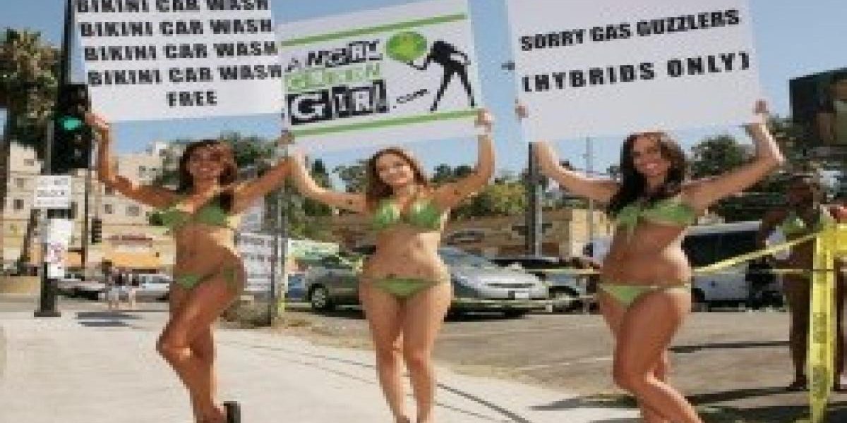 Pourquoi pas après tout. Un regroupement de jeunes femmes appelé « lavage du véhicule en bikini (vert évidemment…) ? Hein, quoi de mieux, je pose la question.