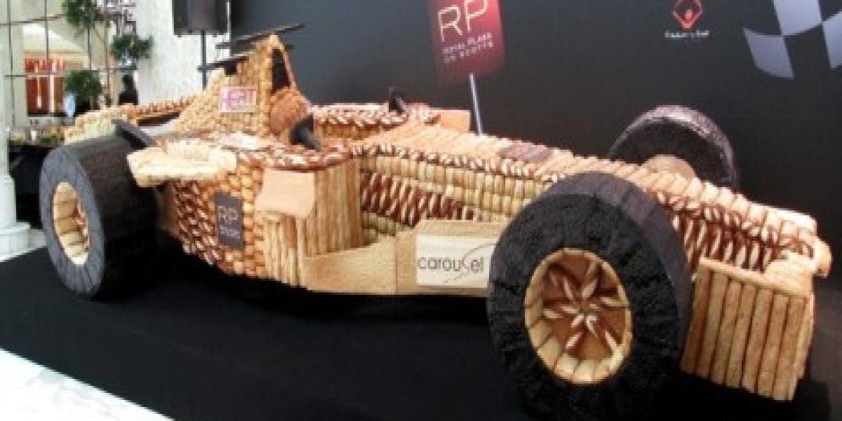 C’est l’heure du goûter voilà donc une petite mise en bouche que ce billet dévoilant une réplique de Formule 1 réalisée à partir de différents types de pains. Cette oeuvre auto-culinaire a été réalisée par une brigade de six cuisiniers en collaboration avec deux artistes, cinq volontaires plus divers intervenants sous la baguette (évidemment) d’un chef. Voilà qui ne mange pas de pain comme introduction…