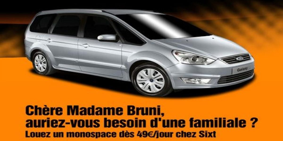 Après Nicolas Sarkozy avec le croustillant slogan « Faites comme Mme Bruni. Prenez un petit Français« , le loueur Sixt continue de surfer sur l’actualité pipolo-politique en détournant cette fois la présumée grossesse de la première dame de France. Encore un joli coup dans le domaine de la communication !