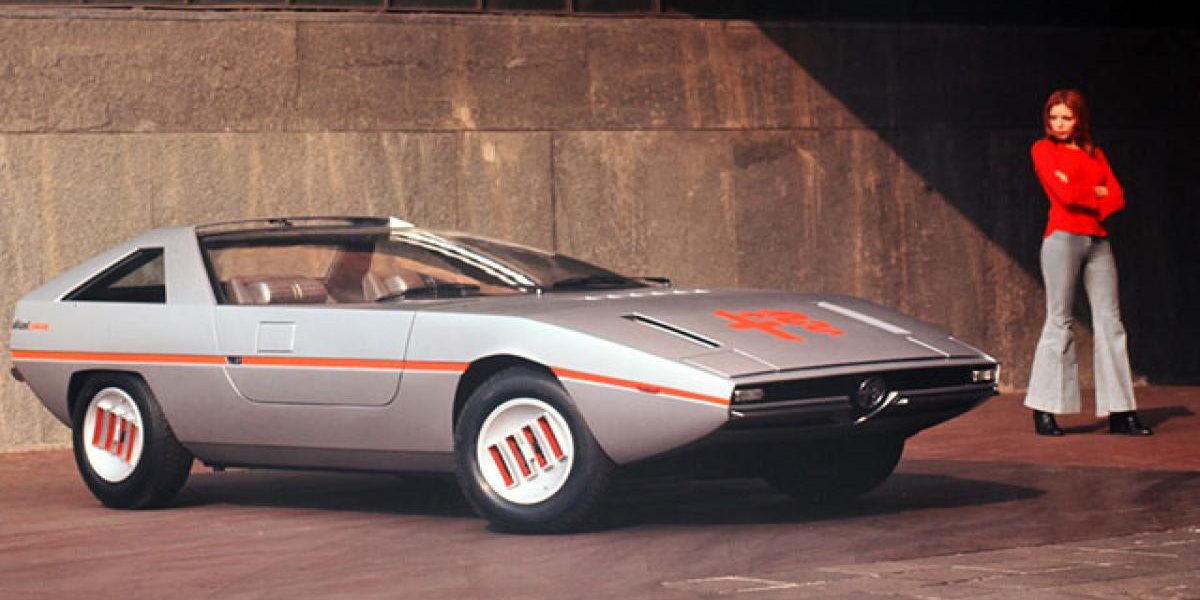 Le lien entre ItalDesign et AlfaRomeo a toujours été très fort. Pour célébrer la sortie de l’Alfasud, Giugiaro présente au salon de Turin 1971 la Caimano, qui en reprend la base.