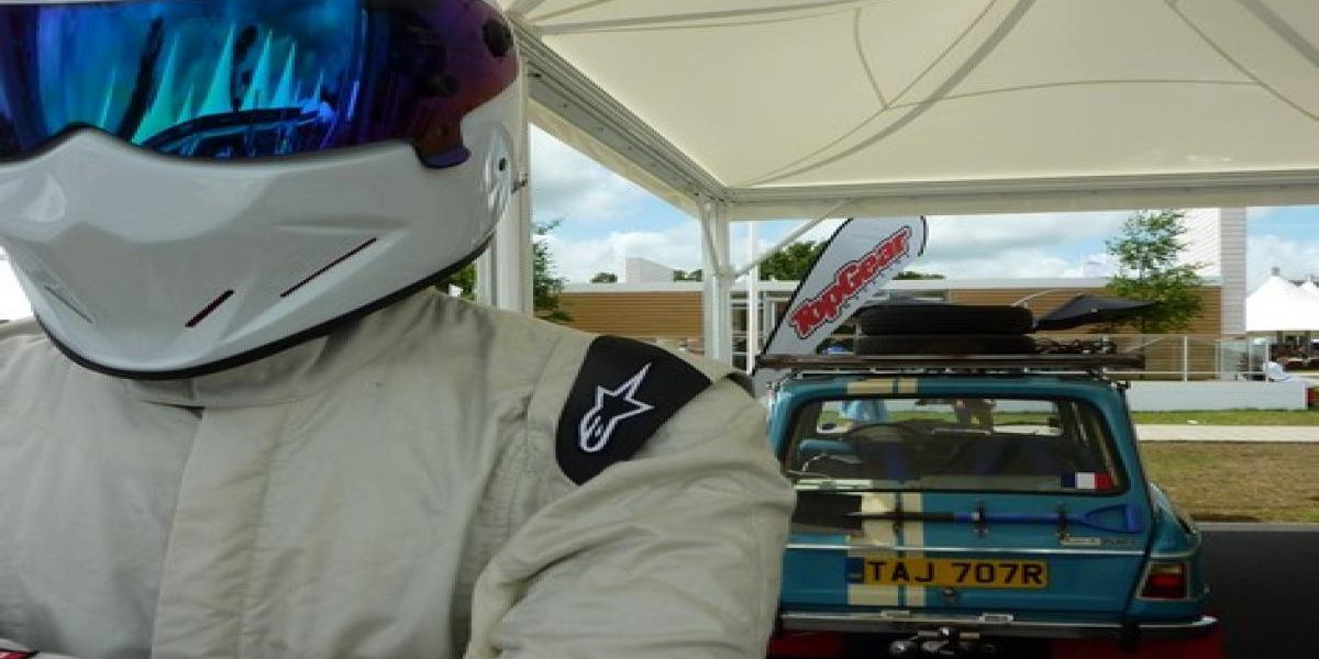Avec Alain Prost en guest star ou encore un fort investissement de Renault, la France était à l’honneur à Goodwood cette année. Top Gear a décidé de lui rendre hommage à sa façon.Difficile de manquer la boutique. Aux bords des allées, des jeunes femmes venues de la 3ème page du Sun et au parler cockney haranguent le jeune mâle visiteur. Même sans céder à l’achat à vil prix d’un lot d’invendus, il lui était permis de découvrir cette Ami 8 lourdement fardée. Cette création, vieille de 3 ans, a pris part au rallye de Majorque classic, aux mains de James May et de Madison Welch, une ancienne égerie du…Sun. La Citroën fait dans le « froggies » à outrance, à grand renfort de cocardes, phares jaunes et cartes Michelin. A l’évidence, elle doit aussi être équipée d’un range bouteille de rouge et doit se conduire avec des espadrilles. Avec un passage pour la manivelle au travers de la calandre, c’est bien sur manuellement que l’équipe se plaisait à démarrer la Citroën. Et Jeremy Clarkson d’ajouter qu’« en 1977, l’eau n’était pas potable en France et ils n’avaient jamais entendu parler de la clef de contact ». On ne change pas une ligne éditoriale qui gagne…