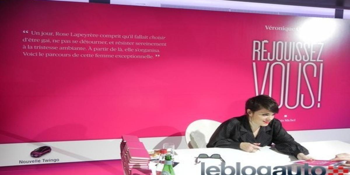 Oui, c’est bien une séance de dédicace d’un roman. En l’occurrence, la nouvelle de Véronique Osvaldé, Réjouissez-vous! Non, vous êtes bien au Blog Auto et non au Blog Livre!