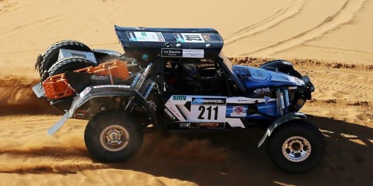 Au programme de l’étape du jour de l’Africa Eco Race, une boucle de 358 km de spéciale de dunes propices à l’ensablement. Les écarts à la fin de la journée sont conséquents et seuls les deux buggys français ou presque s’en sortent sans dommage.