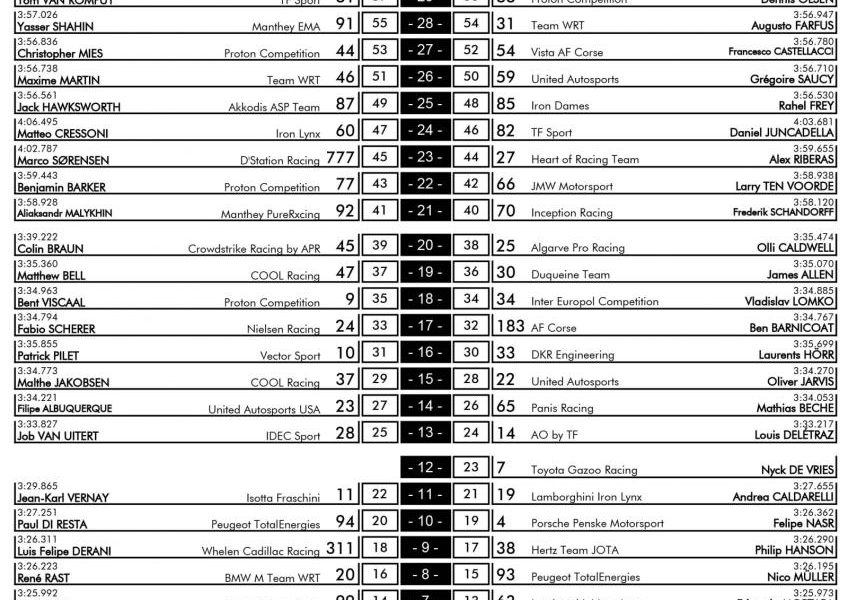 L’Automobile Club de l’Ouest a publié la grille officielle du départ des 24 heures du Mans 2024. Si Porsche est bien en pole, pour Toyota il y a un peu de mieux puisque la #7 ne partira finalement pas 61e.
