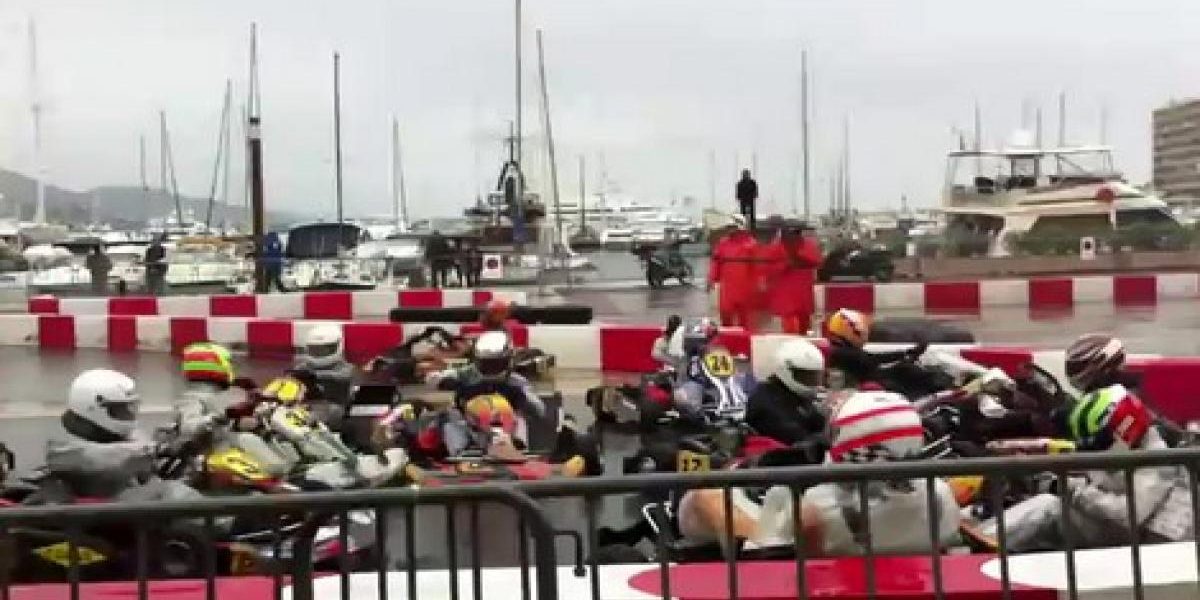 La scène se passe à Monaco, en KF3. Pour une bonne tarte au mur, la recette est simple: prenez une bonne piste détrempée, des pilotes fous furieux (genre: « les autres vont lever le pied, donc, moi, je soude, histoire de doubler »), une chicane et voilà!