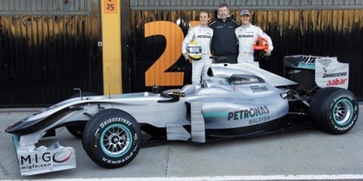 Lors de la présentation de l’équipe Mercedes Grand Prix à Stuttgart la semaine dernière, c’est sur une voiture 2009 que les nouvelles couleurs des Flèches d’Argent avaient été présentées. Il aura fallu attendre ce matin l’ouverture de la première session de tests sur le circuit Ricardo Tormo de Valencia pour découvrir la vraie monture de Michael Schumacher et Nico Rosberg, baptisée d’un très logique MGP W01.