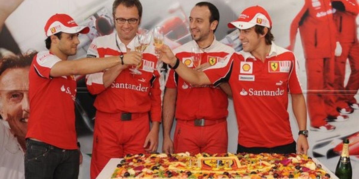 Fernando Alonso a commencé le Grand Prix de Hongrie, ce week-end, avec une petite fête organisée en son honneur et pour fêter son 29e anniversaire. En présence de divers médias de la presse internationale, tous les acteurs de la Scuderia ont posé et trinqué le tout dans la meilleure ambiance possible. Certains de pointer peut-être un sourire pincé sur le visage de Felipe Massa. Ah bon, et pourquoi donc ?!