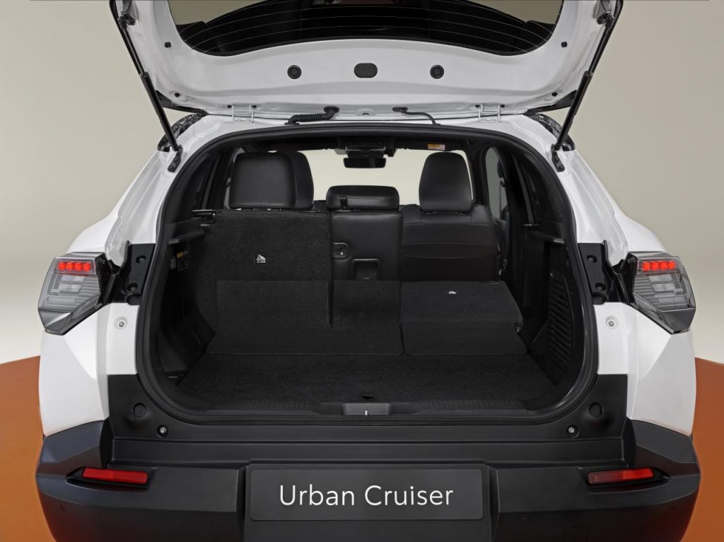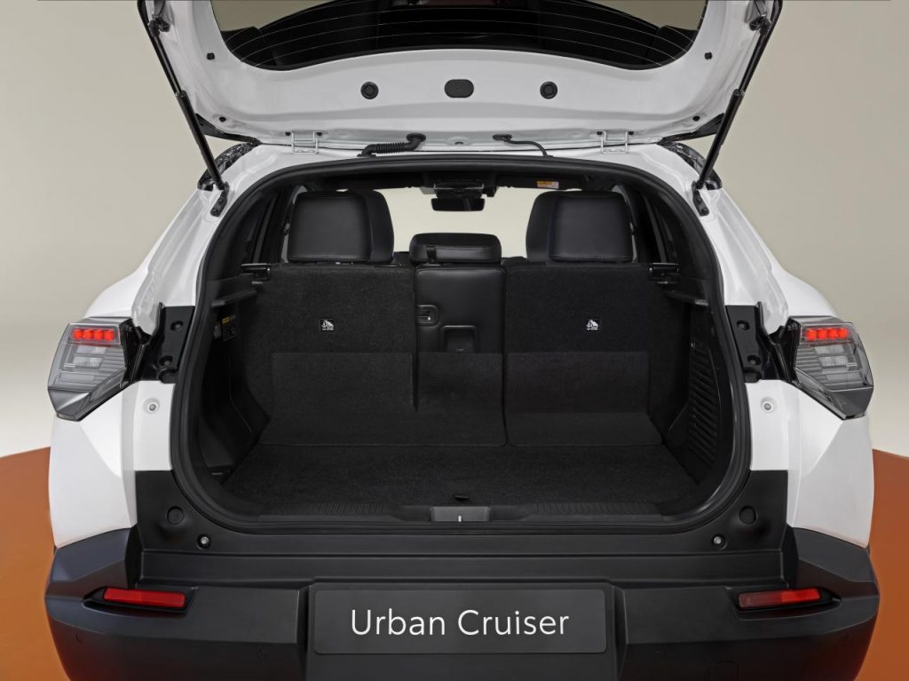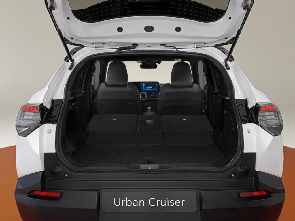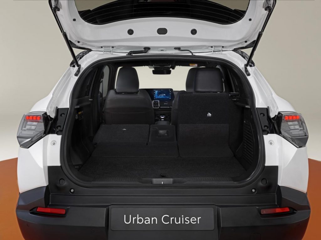 Qu’avons-nous donc à nous mettre sous la dent? Une petite voiture de 4,28 m de long (c’est 14 cm de plus qu’une Yaris Cross) pour 1,80 m de large et 1,64 m de haut, dont l’architecture exclusivement électrique autorise un empattement intéressant de 2,70 m. On nous promet également un diamètre de braquage réduit (donc parfait pour la circulation urbaine) de 10,2 m. Bizarrement Toyota fait l’impasse sur le poids de son Urban Cruiser, mais si on s’en réfère aux chiffres de son frère jumeau de chez Suzuki, la masse de cet engin oscillera entre 1700 et 1900 kg selon les motorisations et les finitions. Dont pas un poids plume, de prime abord. Encore une fois, c’est pile dans la catégorie reine en Europe des B-SUV, avec les Kia Niro/Hyundai Kona, Renault 4, Peugeot e-2008, Citroen e-C3 Aircross, Opel Mokka Electric, Fiat 600e, Jeep Avenger, Ford Puma Gen-E, DS3 e-Tense ou….le futur Suzuki e-Vitara!