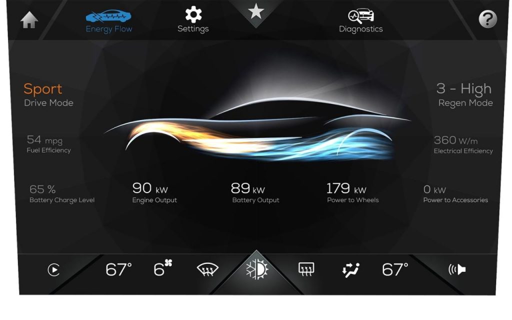 Quoi qu’il en soit, la partie technique a été largement revue, avec pour objectif d’en améliorer les fonctionnement, les performances et la fiabilité. Sans changer le principe. Qui reste donc celui d’une électrique avec deux moteurs électriques à l’arrière, et un moteur thermique rechargeant la batterie à l’avant.