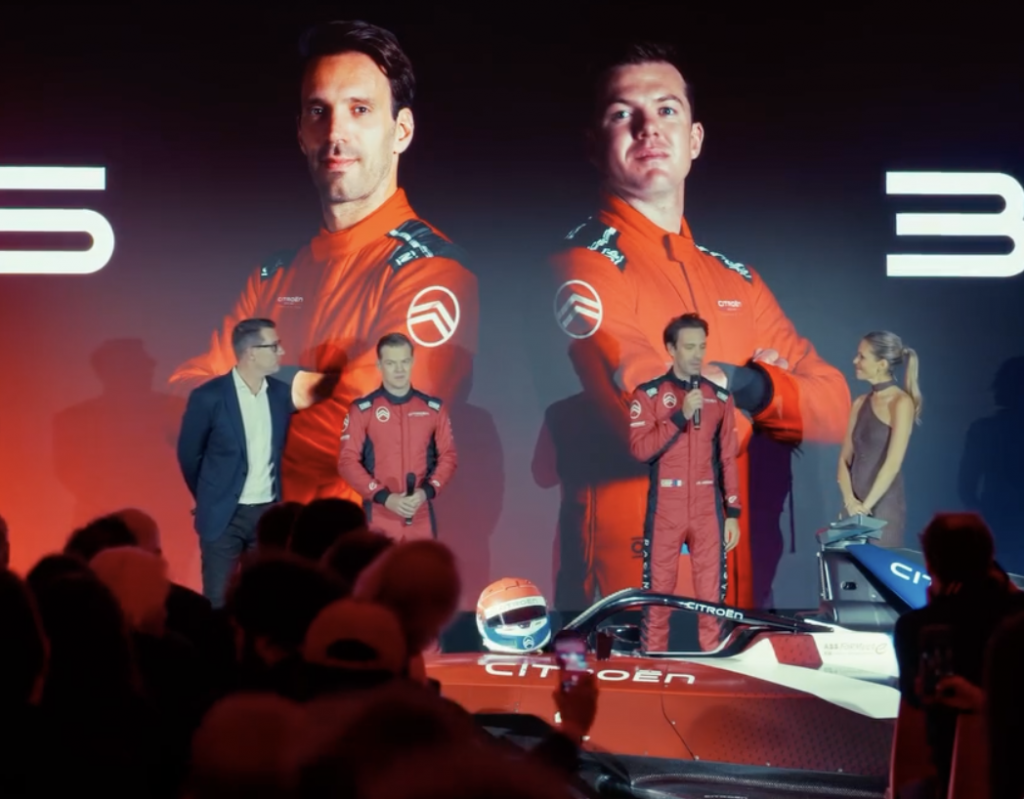 Le scénario de la présentation a d’abord conduit sur scène le nouveau patron de Citroën, Xavier Chardon, au volant d’une AMI aux phares jaunes, habillée des couleurs de la monoplace que nous n’avions pas encore vue à ce moment-là. Il fut rapidement rejoint par les personnalités à l’origine de ce retour de Citroën en sport automobile, dont Nick Cassidy, l’une des pointures du championnat, venu de Jaguar. On ne comprenait cependant pas alors l’absence de Jean-Éric Vergne, le pilote français de cette équipe française.