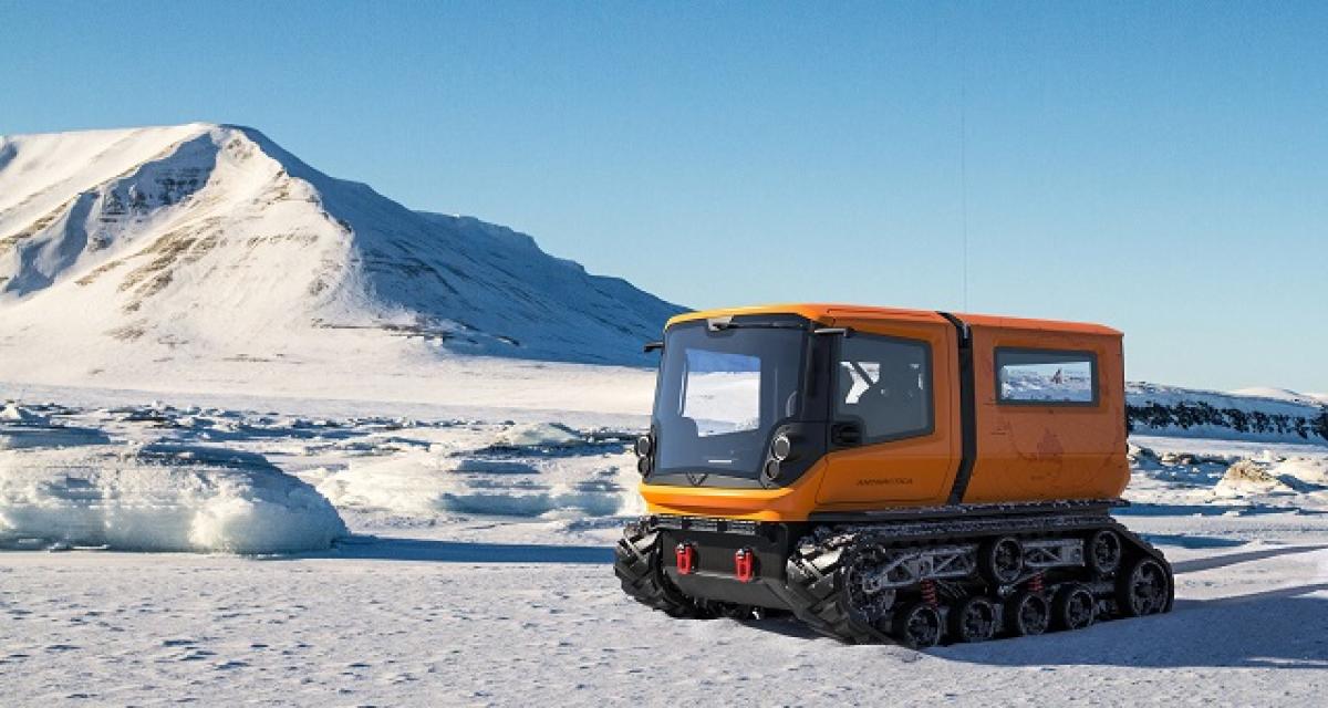 Le véhicule électrique – grâce à la présence de sièges rabattables – peut transporter jusqu’à six passagers. Il est capable de résister à des températures pouvant atteindre -70°. Le véhicule à chenilles est équipé de deux moteurs électriques qui peuvent être rechargés notamment à l’aide de l’énergie solaire, alors qu’une importante récupération d’énergie est également garantie par la présence de freins régénératifs.