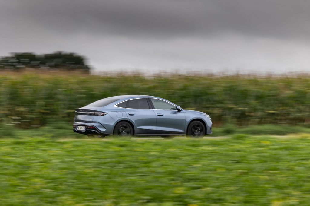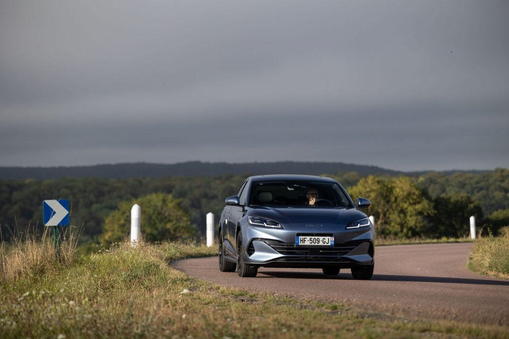 Le bas blesse souvent au chapitre du freinage sur une hybride. BYD a a priori passé du temps à en peaufiner le réglage. Au bout d’un moment, la douceur des transitions entre régénération et freins « mécaniques » nous fait oublier vraiment lequel des deux ralentit la voiture. On conduit de façon tout à fait naturelle, comme une voiture finalement somme toute traditionnelle. Elle sait donc voyager dans le confort que l’on attend d’une auto du genre. On note néanmoins quelques bruits d’air à allure autoroutière, mais rien de vraiment rédhibitoire.