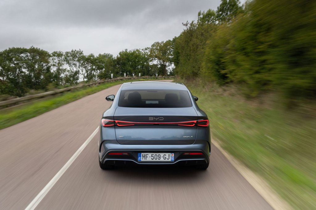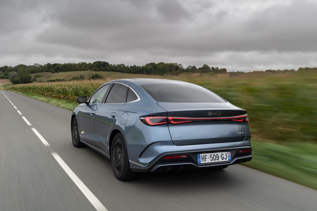 Libre à vous d’y voir une inspiration chez la concurrence. Il n’empêche qu’on ne la confondra pas pour autant avec une autre voiture. Et pour dissiper tout doute en la matière, le logo BYD apparaît en (trop) grand au bout du capot. À vrai dire, avec ses traits fluides, on ose le dire, elle a une certaine élégance dans les lignes. Avec des roues plus grandes, elle aurait même l’air encore un peu mieux posée sur la route. De notre côté, on lui trouve même carrément du charme en break Touring. Aurait-il fallu aller un peu plus loin dans le design ? Sa carrière commerciale nous le dira.
