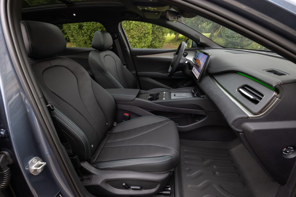 1. Alors les intérieurs chinois c’est inspiration Mercedes/Bentley/Maybach pour les sièges surpiqués et portières avec boutons argentés. C’est l’écran comme à la Tesla avec ce coté désuet pour le mobilier à l’Infiniti mais ne vous y trompez pas! C’est ce qui marche en Chine et qui va marcher en Europe puisque VAG reprend ces principes pour ses prochaines autos. Finis les laqués qui claquent et les angles comme les planches de bord des actuelles Audi. Rentrez dans une BYD et vous aurez l’impression d’être dans un cocon et c’est cela qui plaît aux acheteurs. L’intérieur ici est gris et noir … en Chine il serait beige ou marron. Ce qui vous semble « daté » en fait c’est votre avenir automobile. Et c’est mieux fini qu’une Toyota, croyez-moi!