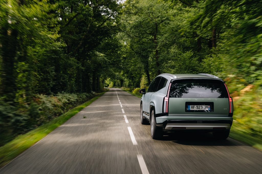 Ses 307 chevaux et, surtout, son couple maxi camionesque de 605 Nm suffisent très largement pour déplacer ce Ioniq 9 (2 582 kg). Il décolle quand on le sollicite, à l’image de son 0 à 100 km/h abattu en 6,7 s. Ses relances sont tout aussi énergiques, bien entendu, mais pas forcément nécessaires ailleurs que sur l’autoroute. Car, une fois que l’on quitte les grands axes où le Ioniq 9 se sent particulièrement à l’aise, on subit alors ses grandes cotes et son poids sur le réseau secondaire. Il faut simplement accepter l’idée de ne pas conduire une voiture hyper dynamique, malgré sa puissance confortable.
